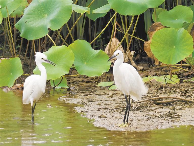近日,在西安浐灞国家湿地公园,两只大白鹭沉静停歇。据了解,该湿地公园已建成区域占地4700亩,公园内有大小岛屿100余座。这里生长着193种植物,植被覆盖面积达160万平方米,吸引了151种鸟类在此栖息。
