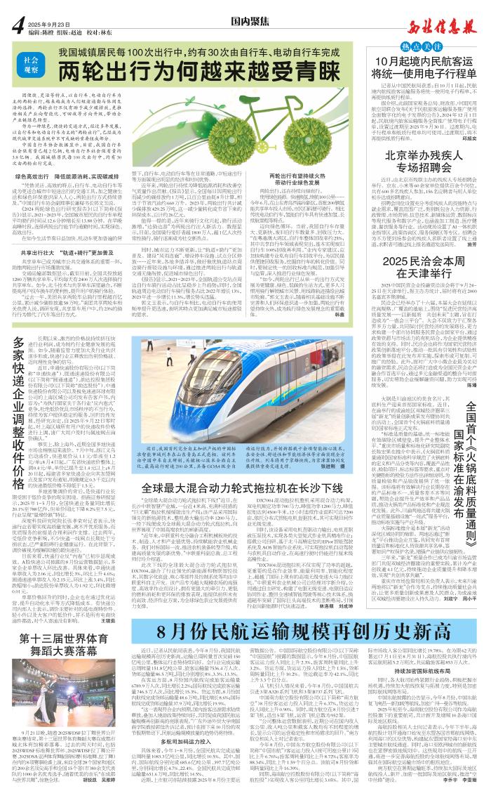迈向绿色循环。当前,我国自行车存量大、更新快,废旧自行车数量多、回收压力大。“在粤港澳大湾区,自行车整体回收率约25%,其中共享自行车领域表现突出,基本实现废旧自行车100%回收再利用。”业内专家建议,应加快构建专业私有自行车回收平台,为居民提供便捷回收服务,挖掘自行车的转化价值。同时,要制定统一的回收标准与规范,加强引导与监管,深入推进行业绿色发展。