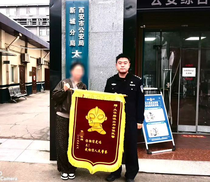 西安一女士给派出所送来“奥特曼锦旗”