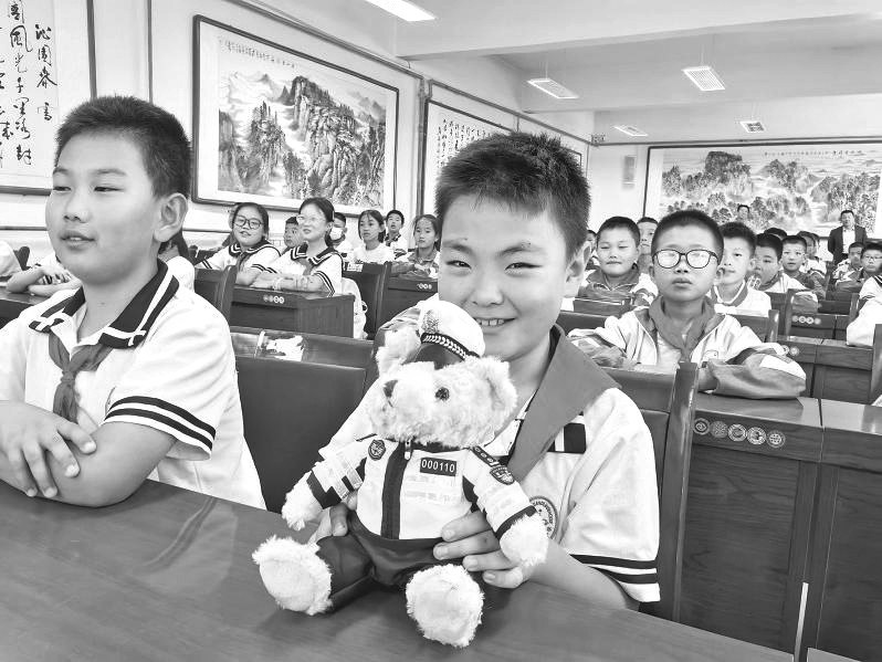 近日,靖边县公安局交通管理大队城区二中队宣传民警带着“交警小熊”玩偶,走进该县第九小学开展“知危险、会避险”交通安全知识进校园活动。