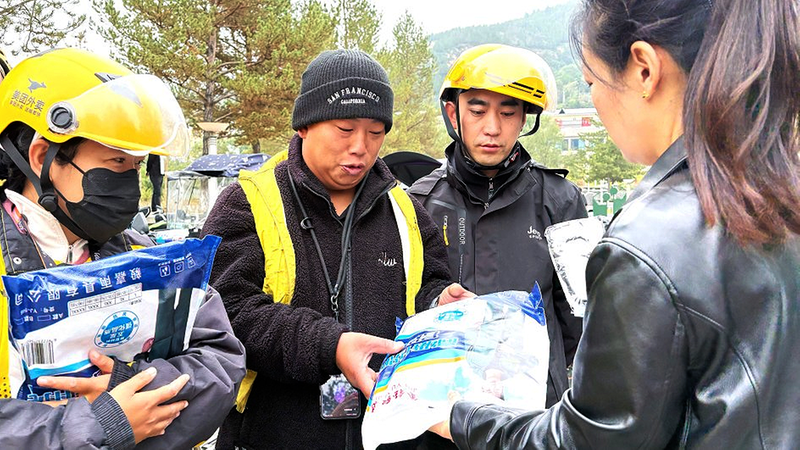 随后,工作人员将装满手套、雨衣、张贴膜和宣传册的“工具包”逐一送到骑手代表手中——实用装备能解决日常配送的“小麻烦”,而印着“垃圾分类,从你我做起”的张贴膜,要贴在配送箱上,让骑手们成为穿梭在街头巷尾的“流动宣传站”。