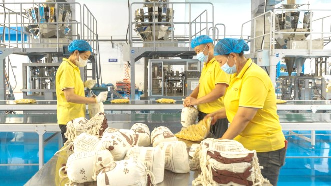 在米脂县的工业园区内,机器轰鸣,一片繁忙景象。小米加工企业正满负荷运转,将收获的谷子转化为各种各样的产品,充分挖掘小米的多元价值。
