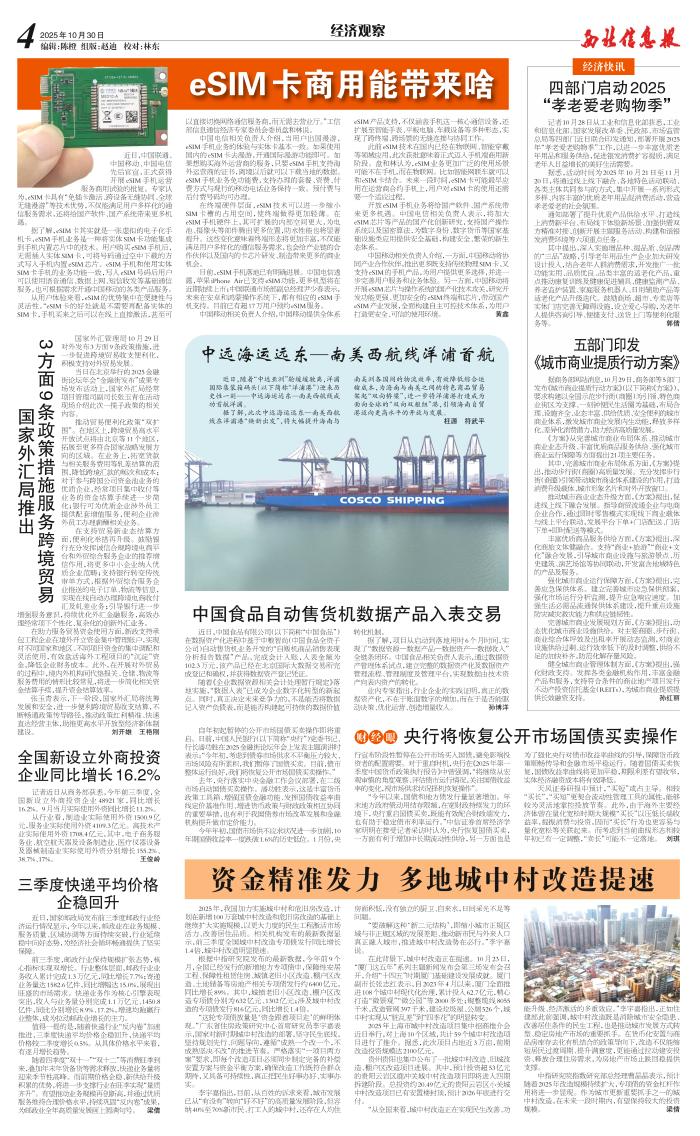 推动贸易便利化政策“双扩围”。在地区上,跨境贸易高水平开放试点将由北京等11个地区,拓展至更多符合国家战略发展方向的区域。在业务上,拓宽货款与相关服务费用等轧差结算的范围,降低跨境汇款的频次和成本;对于参与跨国公司资金池业务的优质企业,经常项目集中收付等业务的资金结算手续进一步简化;银行可为优质企业涉外员工提供配套增值服务,便利企业涉外员工办理薪酬相关业务。