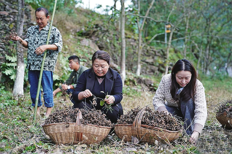 近日,果农在旬阳市神河镇王义沟社区拐枣种植基地采收拐枣。