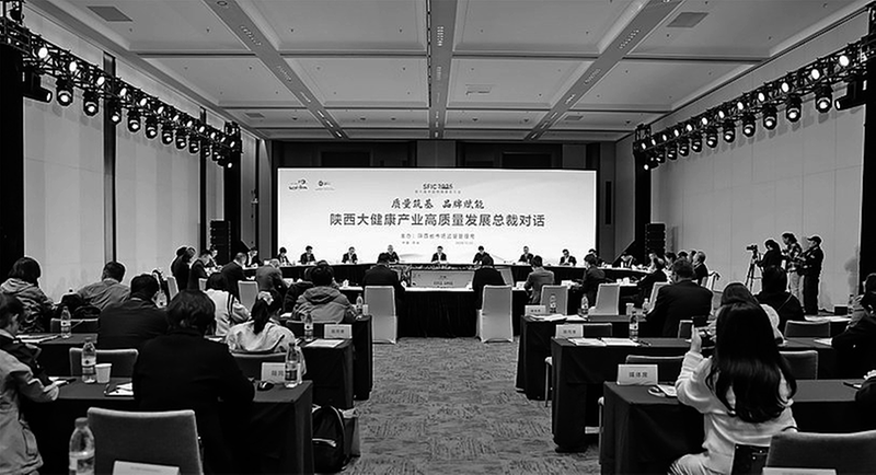 “陕西大健康产业高质量发展总裁对话活动”活动现场。本报讯(记者 庞玲玲 实习记者 权子昂)近日,陕西省市场监管局主办的“陕西大健康产业高质量发展总裁对话活动”在西安举行。陕西省市场监管局党组书记、局长张小平出席活动并致辞,省药监局党组书记、局长冯锋介绍了陕西省大健康产业发展的有关情况,活动由陕西省市场监管局党组成员、副局长刘蓬勃主持。