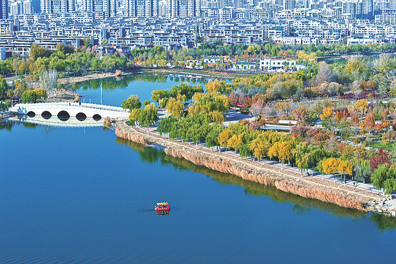 深秋的“塞上湖城”宁夏银川,色彩斑斓、秋景如画。红色、黄色、绿色各种色彩混合在一起,好似打翻大自然的调色板。