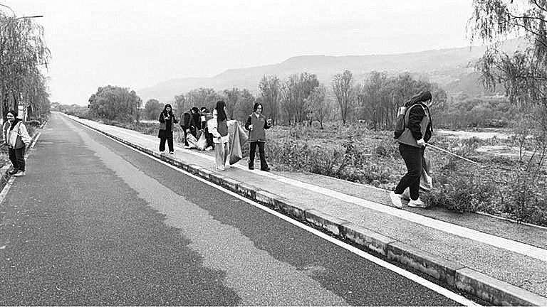 当天,数十名青年志愿者手持垃圾钳、拎着分类垃圾袋,沿着灞河岸边细致排查。指尖沾满泥土,裤脚沾上水渍,却无人停歇。经过数小时努力,共清理出6大袋垃圾。