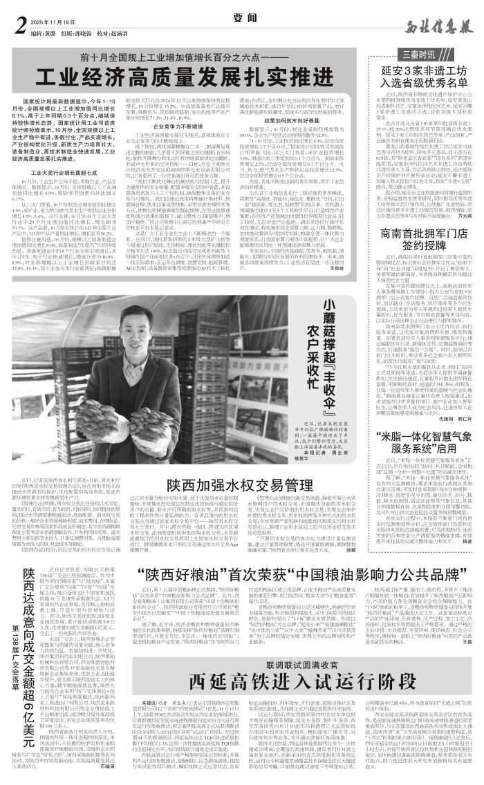 据了解,近年来,陕西省粮食和物资储备局不断细化实化政策举措,持续发挥“陕西好粮油”品牌引领带动作用,开展全方位、多层次、一体化的宣传推广,促进特色粮食产业发展。“陕西好粮油”作为陕西全力打造的粮油区域公用品牌,正成为推动产业高质量发展的重要引擎,助力陕西从“粮食大省”向“粮食强省”稳步迈进。