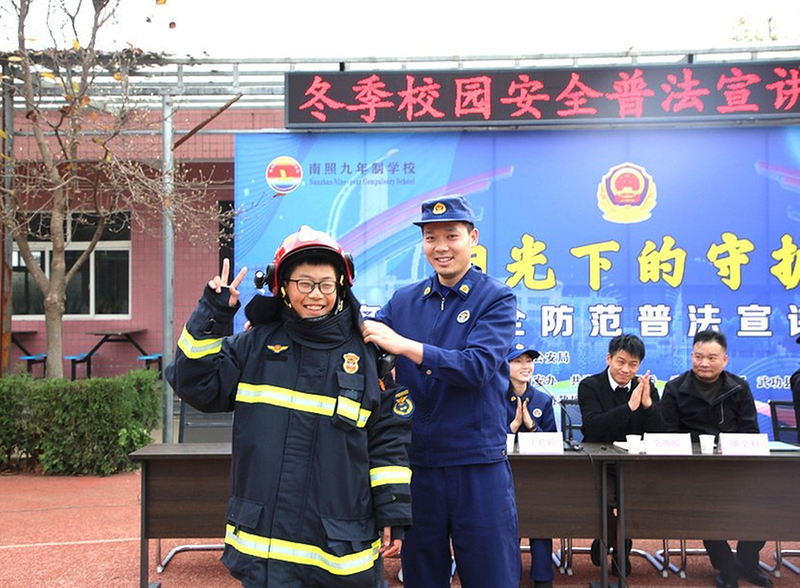本报讯(记者 李勇)为深入推进“金盾护苗”专项工作部署,切实守护青少年健康成长,近日,陕西省武功县委国安办、共青团武功县委联合县公安局、教育局、司法局、消防救援大队六部门,走进南照九年制学校开展“阳光下的守护”冬季安全防范普法宣讲活动。活动以“普法宣讲+互动体验”模式,为师生送上实用易懂的安全法治教育课,让法治暖流浸润冬日校园。