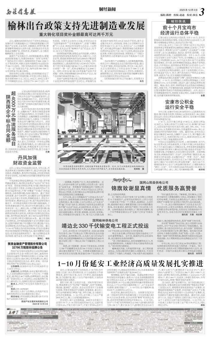 今年以来,该公司已投运18项电网建设工程,电网网架结构和供电能力得到进一步强化。预计至年底前,还将有9项工程陆续建成并投入运行,届时将进一步提升区域电网互联互济和能源承载能力。 通讯员 刘芳芳