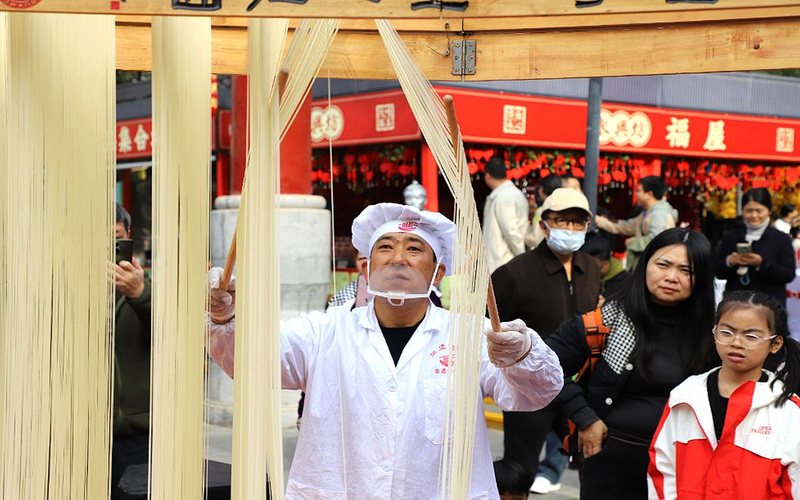 “以前只在电视上见过,今天亲眼看到才知道,这面条里藏着这么多门道,每根都透着老祖宗的智慧!”西安市民刘女士一边拍摄,一边向身边人分享自己的感受。