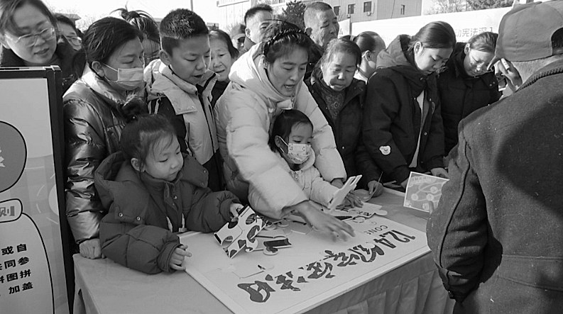 活动现场亮点纷呈,趣味十足。3米×3米的巨型法治飞行棋棋盘前人气高涨,大人小孩轮番掷骰子、答法律考题,每一次前进都伴随着法律知识的积累,在欢声笑语中筑牢法治认知。宪法拓印工坊内,志愿者手把手指导市民操作,油墨晕染间,清晰的宪法条文跃然宣纸之上,成为市民专属的法治纪念藏品。丰富新颖的玩法吸引众多市民踊跃参与。