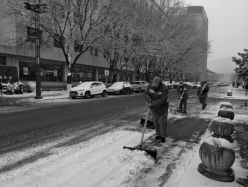 环卫工人清雪忙