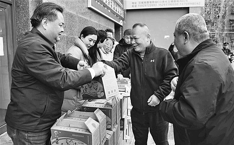 工作人员为居民送上环保礼品。葛兰 代泽均