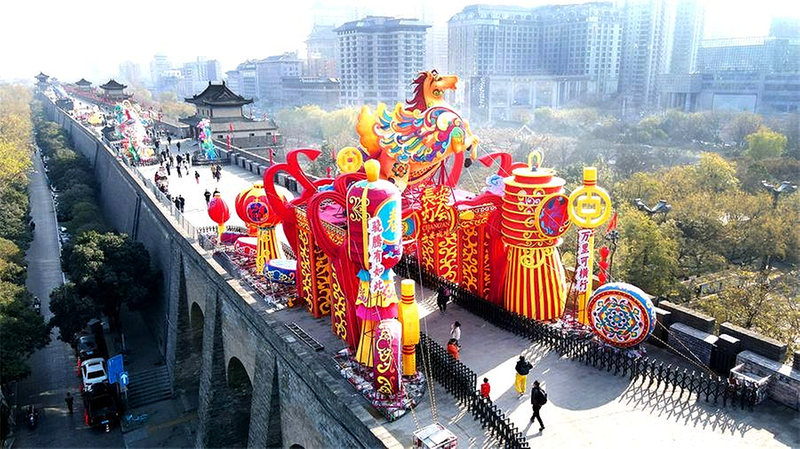 本届灯会以“千灯映长安・午马迎春来”为核心主题,让游客在赏灯之余,还能读懂长安的历史与诗意。李明 摄每当城墙上的彩灯逐渐点亮,便意味着新春的脚步近了。2026“长安灯会·西安城墙”提前到了2026年元旦,市民游客将有81天的时间在城墙上感受“长安灯如昼”。不单是灯会,西安城墙还将在2026年春节期间,开展新春系列文化活动,旨在通过多元活动打造兼具文化深度与体验趣味的新春盛宴,让市民游客在沉浸式体验中感受传统年俗魅力与千年古城的时代风采。12月17日上午,记者探班还在紧张布置中的城墙灯会看到部分花灯已经安装完工,正在进行收尾工作。