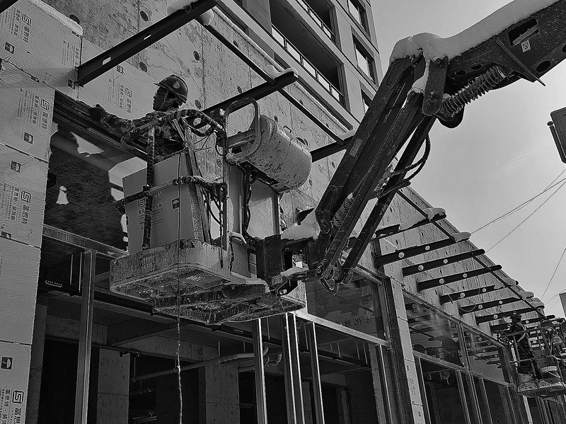 图为1月2日,永寿太和景安公馆项目工地工人给楼墙面安装外墙一体板。 通讯员 李建龙 摄