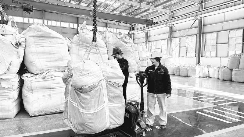 工人正在搬运原材料。 李亮 摄