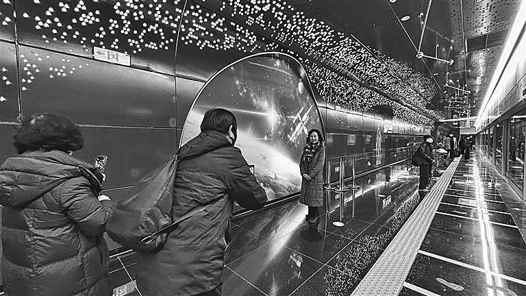 随着西安地铁15号线(一期)的开通,皇子坡站因充满科幻感的星际元素备受关注,许多市民前来打卡。