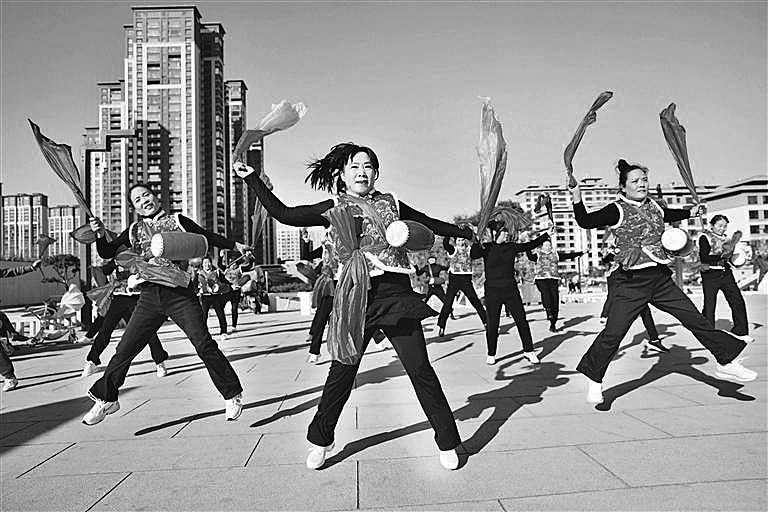 1月12日,西安市长安中央广场锣鼓喧天,长安陕北腰鼓队的队员们身着喜庆的服装,踏着铿锵鼓点欢快起舞,吸引过往市民驻足围观、拍照喝彩。