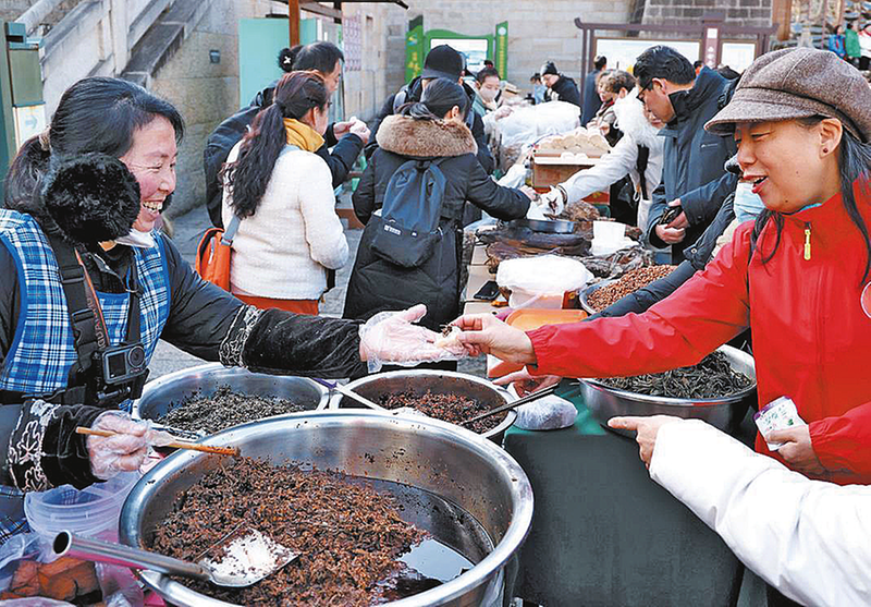 除了“买买买”,不少人还选择去金台山漫步赏景、登高祈福,或是寻一家小馆,尝尝地道的砧板肉、神仙凉粉。当日17时50分,游客们带着满满