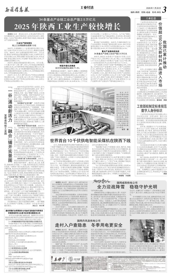 2025年陕西工业生产较快增长