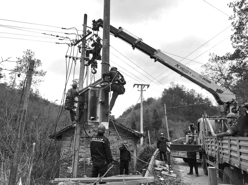 近日,秦巴山区寒风凛冽,气温跌至冰点。在陕西省汉中市西乡县沙河镇黎明村四组的村道边,机械轰鸣、人声鼎沸,一场战严寒、保供电的攻坚战正如火如荼地进行。