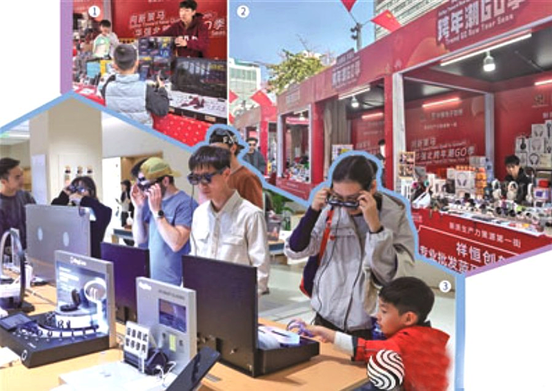 2月3日,记者在广东深圳华强北市场走访时看到,正在举行的“跨年潮GO季”活动吸引了众多当地市民和中外游客前来购物。现场,AI眼镜、AI玩具、AI健康监测手表、无人机、全景相机等消费电子产品琳琅满目。