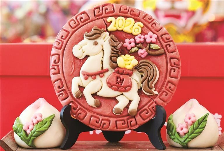 春节临近,西安市雁塔北路的一家非遗花馍坊的“马上有福”迎春花馍走俏,这些骏马、苹果、朱鹮、福袋等寓意美好的花馍巧妙融入了陕西文化元素,造型俏皮又不失传统韵味。