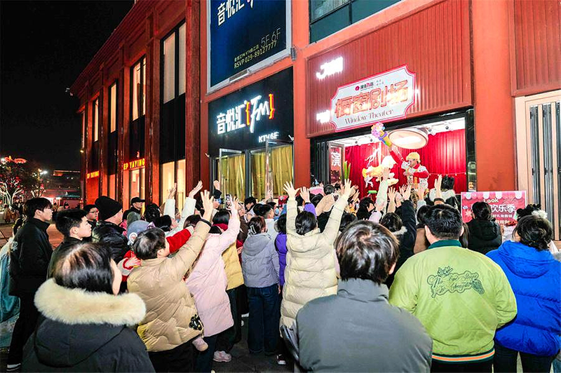“橱窗剧场”带来精彩演出。临近春节,西安大唐不夜城灯火璀璨,游人如织。银泰百货曲江店将临街店面橱窗打造成“橱窗剧场”,民乐演奏、魔术表演、皮影戏表演轮番上演,吸引不少游客驻足观看,拍照打卡,掌声和欢笑声不绝于耳。