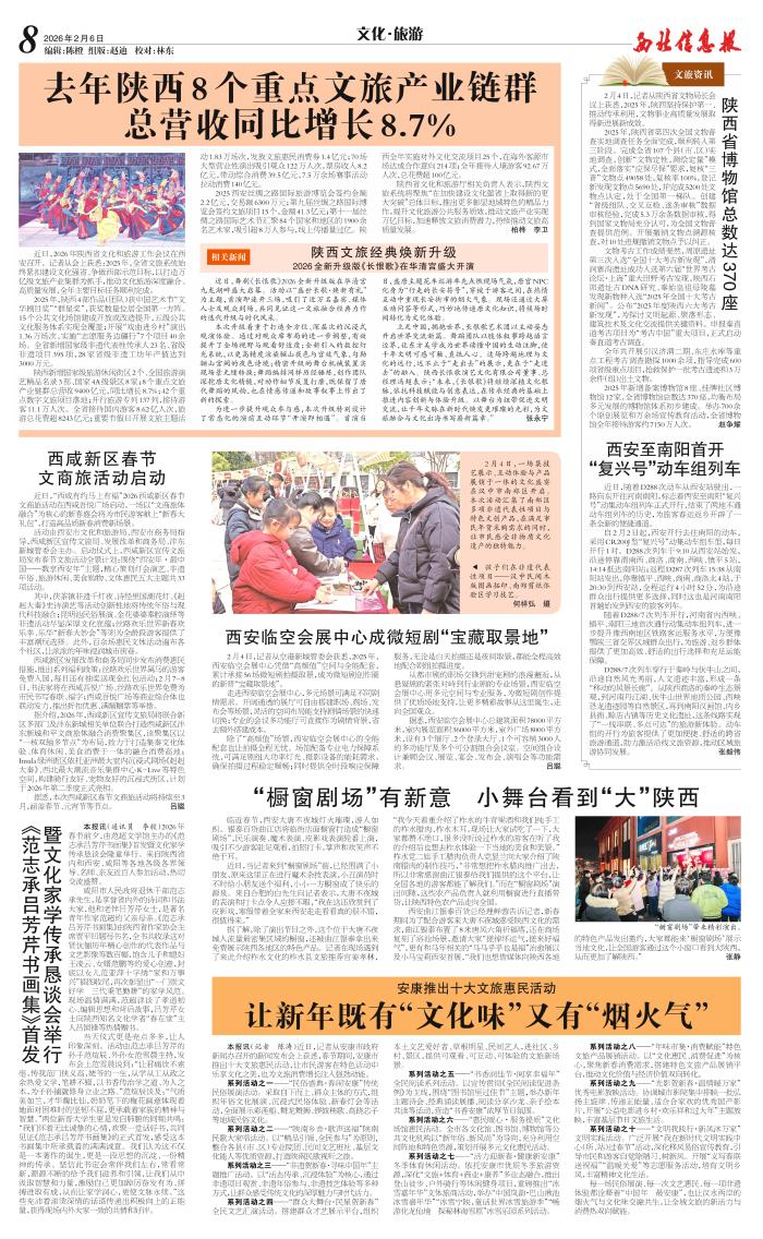 去年陕西8个重点文旅产业链群总营收同比增长8.7%