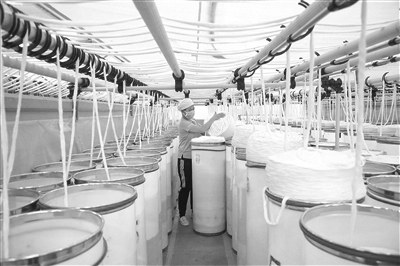 近日,位于乾县的陕西银华纺织有限责任公司生产车间内,工人在忙生产。近年来,咸阳市不断优化政策供给,建立规范化管理体系和现代企业运营模式,构建了以咸阳市新兴纺织工业园、乾县纺织工业园为载体,以棉纺织、功能性服装、产业用纺织品为主导的纺织产业格局。