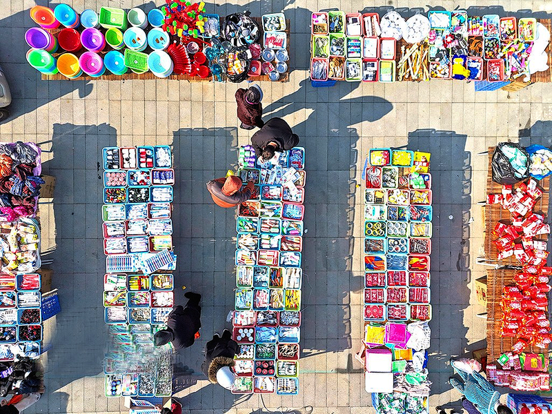 2026年2月8日,在江西赣江新区新祺周管理处邻里中心的周末集市上,各类年货琳琅满目,涵盖蔬菜水果、酱菜熟食、坚果炒货、日用百货等,前来选购的群众络绎不绝,年味浓郁。