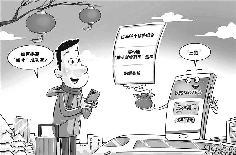 春节临近,12306平台的“候补”功能再次火爆,不少网友借此功能成功“捡漏”。候补票源分两类,一种是常规的退票、改签释放席位,一种是铁路部门根据候补数据新增的运力。那么,提交候补时,如何才能成功“兑现”?旅客可以拉满候补组合,每个用户能同时提交6个候补订单,每个订单可选3个乘车日期,最多能凑60个“日期+车次”组合,还能勾选多个席别。提交订单时,一定要勾选“接受新增列车”,当出现加开列车时,系统会自动兑现。把握先机,排队位置越靠前,成功率越高,提前绑定好支付方式,核对好乘车人信息,别因支付超时、信息填错而错失机会。时锋