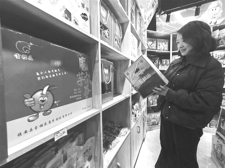 近日,游客在镇安县农特产品直销店挑选商品。2月6日,农历腊月十九。商山洛水间,年味儿已经越来越浓。