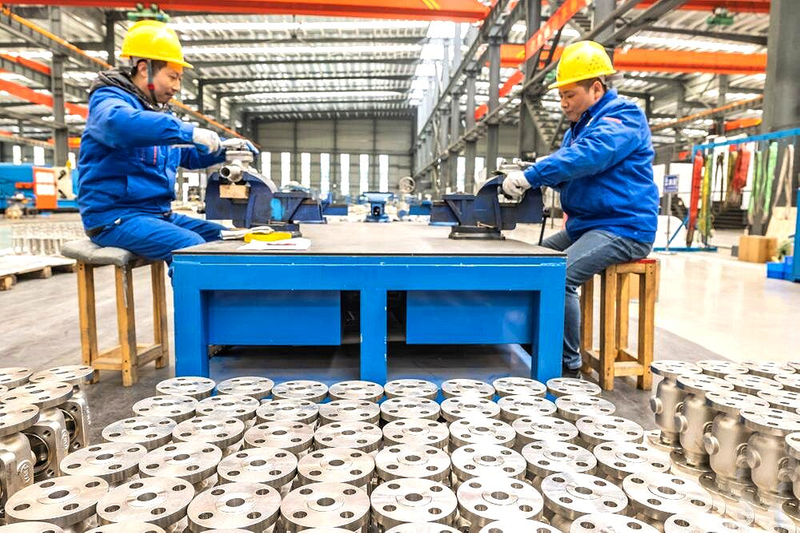 2月24日,工人在湖北省宜昌市秭归县湖北泰和流体控制技术股份有限公司车间忙碌。