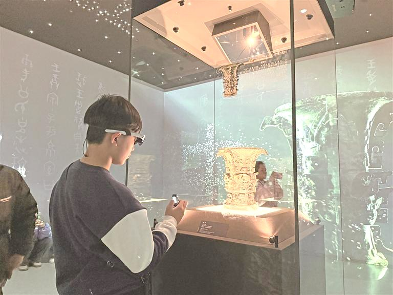 近日,在宝鸡青铜器博物院,游客体验AR眼镜导览。付玉玮 摄