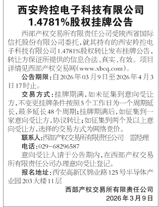 西安羚控电子科技有限公司1.4781%股权挂牌公告