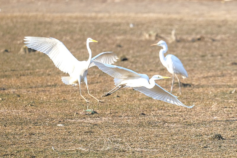 近日,渭南城区沋河公园南段,数只白鹭悠然栖息。它们时而展翅低飞,时而低头觅食,为初春的河畔增添了一抹灵动的风景。近年来,随着治理力度的持续加强,渭南区域国考断面水质稳定达标,吸引了越来越多的野生动物在此安家落户。