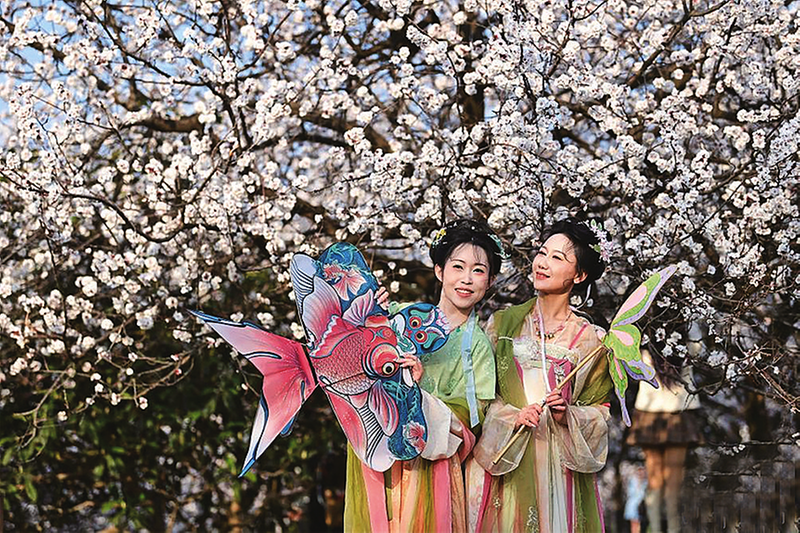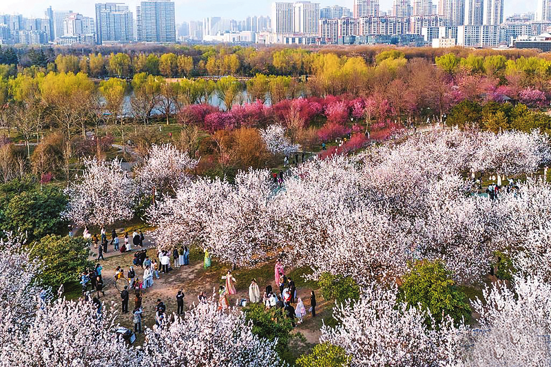 近日,西安大明宫国家遗址公园内繁花盛开,吸引游人前来踏青赏花,感受美好春光。