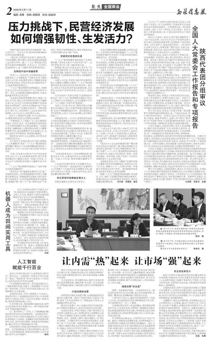 立足发展实际、结合履职实践,陕西代表委员围绕打造消费新场景、增强消费“安全感”、民企迸发新活力积极建言献策,为建设强大国内市场贡献智慧与力量。