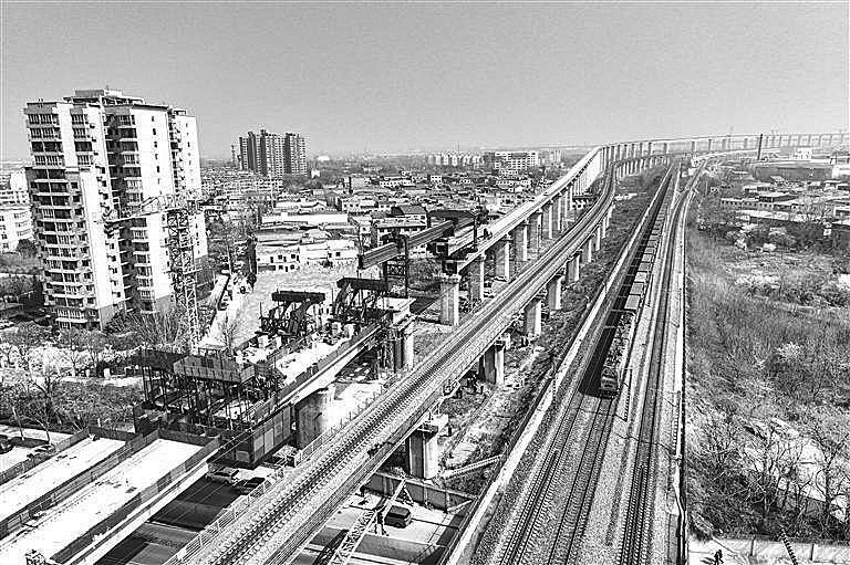 施工现场。熊国栋 摄3月10日,随着最后一孔32米单线箱梁在西安东站西南联络线下行线特大桥上精准落位,西安东站394孔简支箱梁架设任务圆满完成,为车站年内开通运营奠定了坚实基础。