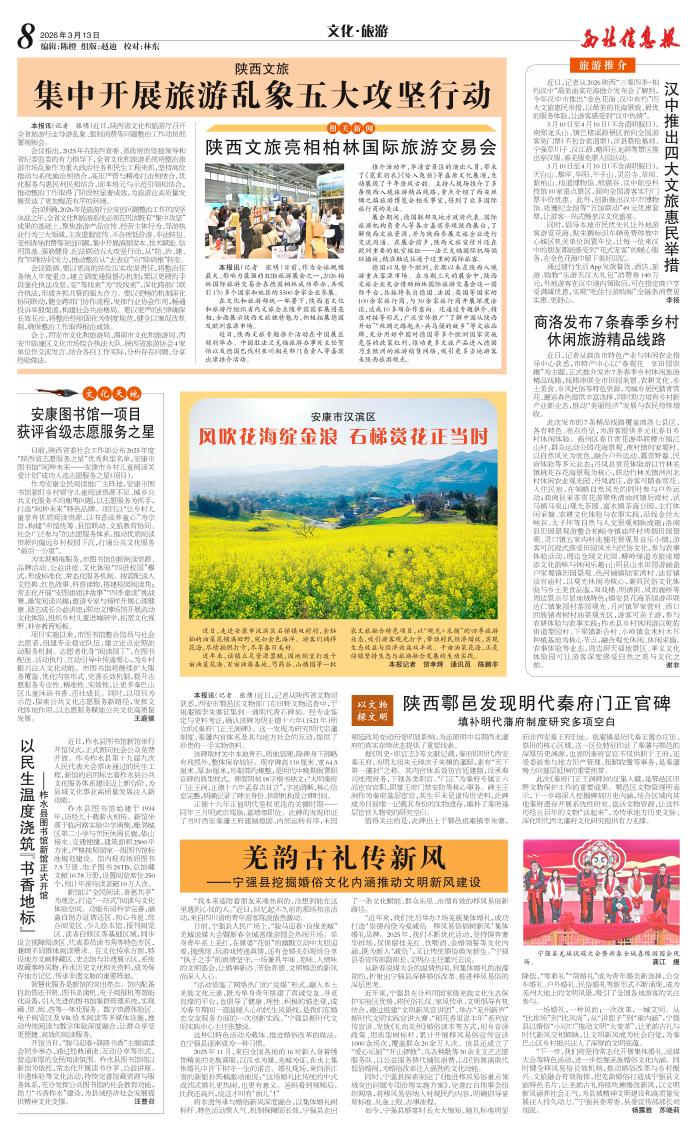 近日,走进安康市汉滨区石梯镇双村村,金灿灿的油菜花铺满田野,宛如金色海洋。游客们徜徉花海,尽情拍照打卡,尽享春日美好。