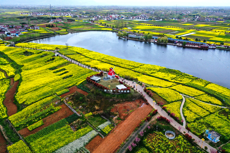 图为2026最美油菜花海汉中旅游文化节主会场汉台区皇塘水乡景区鸟瞰图。 本报记者 韩轩