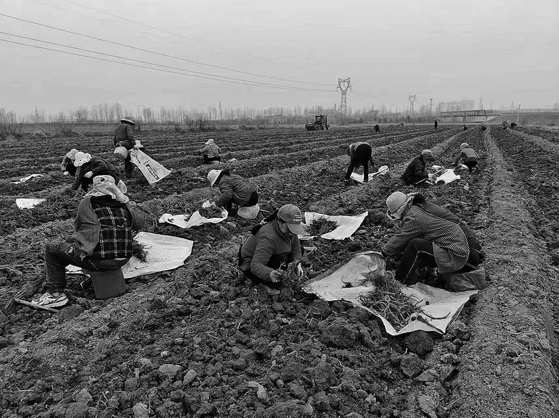 图为务工群众在采收丹参。通讯员 李建龙 摄