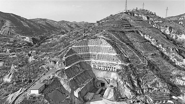 建设中的延榆高铁苗山1号隧道。3月17日,由西成客专陕西公司建设、中铁十四局承建的延榆高铁苗山1号隧道顺利贯通,项目建设取得关键性进展。