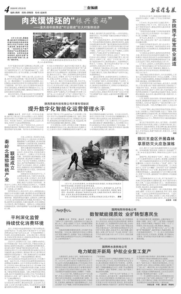 人勤春来早,奋进正当时。随着县域各行业全面开启“春耕”生产模式,用电负荷也随之上升。3月17日,在柞水县35千伏蒋湾变电站10千伏164营太线商洛鑫鑫嘉通公司支线#001杆的工作现场,国网柞水县供电公司的工作人员正在紧张有序地进行新装电能表与采集终端的作业。这是该公司以实际行动助力企业复工复产,为县域经济发展提供坚强电力保障的一个缩影。