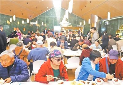 图为市民游客在拙政园苏博大食堂用餐。王建康 摄