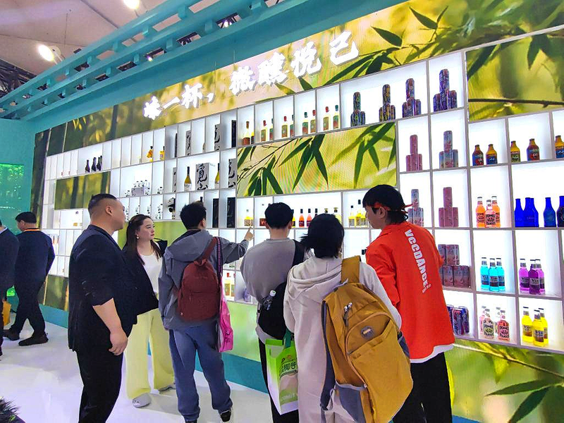 本届糖酒会上,成都邛崃展馆内的“微醺悦己”展区。 董小红 摄近日,第114届全国糖酒商品交易会在四川成都举办。本届糖酒会以“过完春节过春糖”为主题,展览总面积32.5万平方米,集聚了来自全球40多个国家和地区的超6600家参展企业。