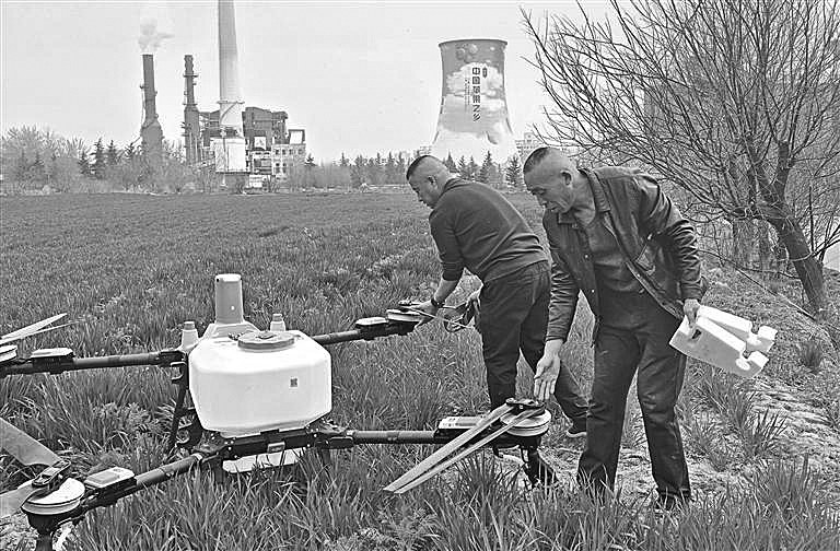 图为飞手侯晓龙(右)和杨建宏在调试植保无人机。 张博 摄当前正值小麦返青除草关键期,白水县抢抓农时,利用现代化农业机械开展小麦春季田间管理,为小麦稳产增收打下坚实基础。