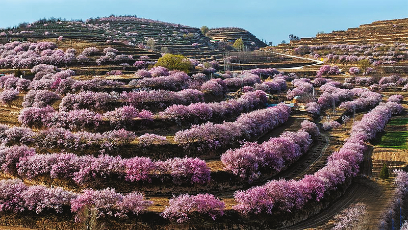 清明小长假期间,位于宁夏固原市彭阳县黄土高原梯田间的数十万亩桃花、杏花进入盛花期。当地结合六盘山山花节,为游客打造多条踏青赏花旅游线路,让游客在黄土高原、梯田之间感受春日花海的魅力。